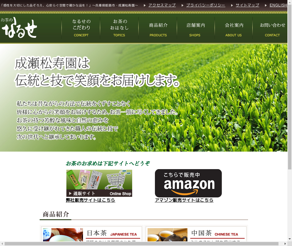 緑茶およびお茶関連商品、またこだわりの緑茶スイーツ商品を販売