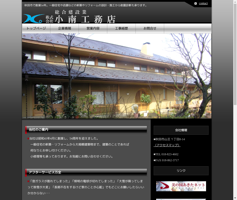 | 事業内容 | 総合建設業創業以来109年の歴史を持ち、現在は主に秋田県、秋田市発注工事を受注しております。土木、舗装、造園、水道、法面工事 |