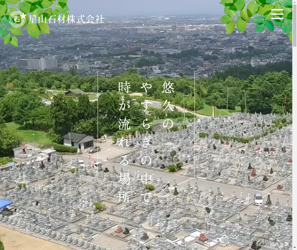 墓石の製造並びに設置販売。墓地造成並びに販売仲介。