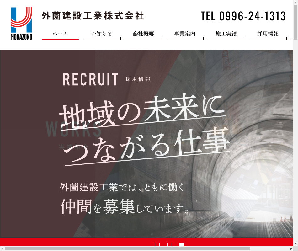 | 事業内容 | 指宿市内を中心に、住みよい街づくりのためにインフラ整備や解体工事を行っています。近年では、建設業の新3K(給与・休暇・希望)を実現するための働き方改革に積極的に取り組んでいます。 |