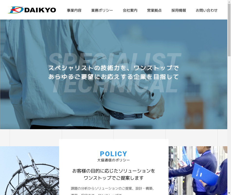 | 事業内容 | 〇NTT事業関連通信設備、モバイル通信設備等の設計・施工・保守管理 〇WIFI、LAN/WAN情報セキュリティシステムの構築 〇高速道路ETC設備の施工・保守管理 |