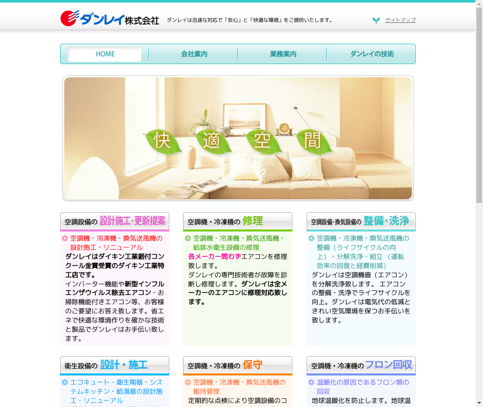 | 事業内容 | 空調設備工事業・給排水衛生設備工事業・管工事業・電気設備工事業並びに上記に関連する総合設備業 |