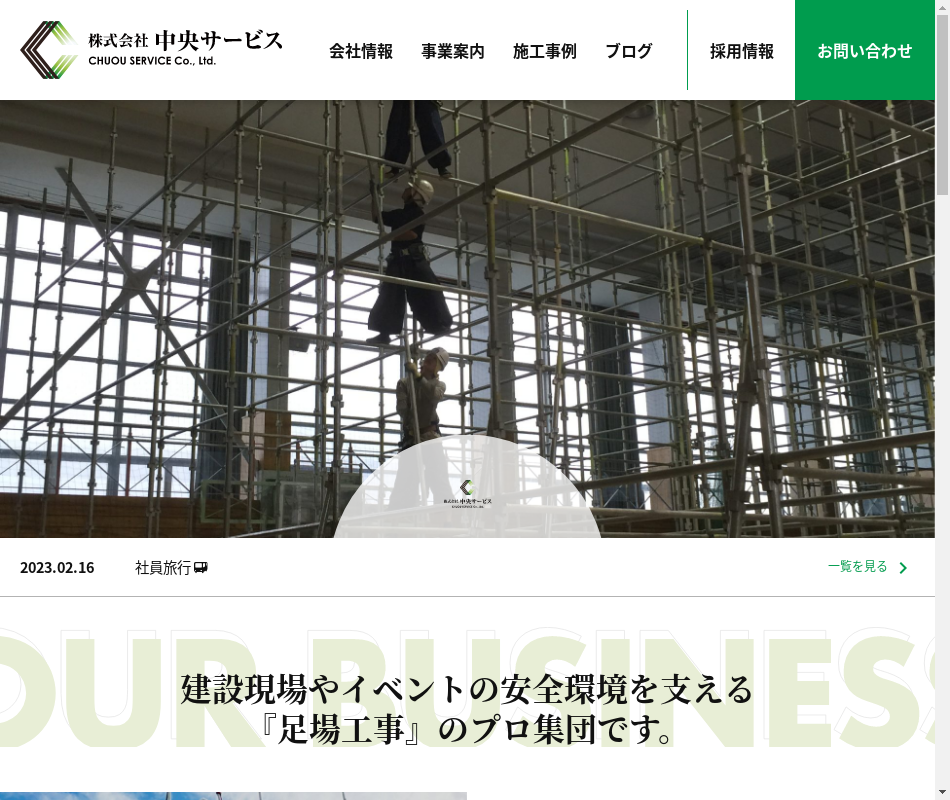 事業内容 | 足場架払リース業 一側足場の組立解体工事一式 |