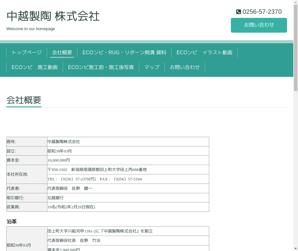 事業内容 | コンクリート二次製品、製造販売業コンクリート製品で側溝のフタ重量1/3の軽量化に成功、特許を取得。国土交通省NETIS,新潟県madein新潟に登録。 |