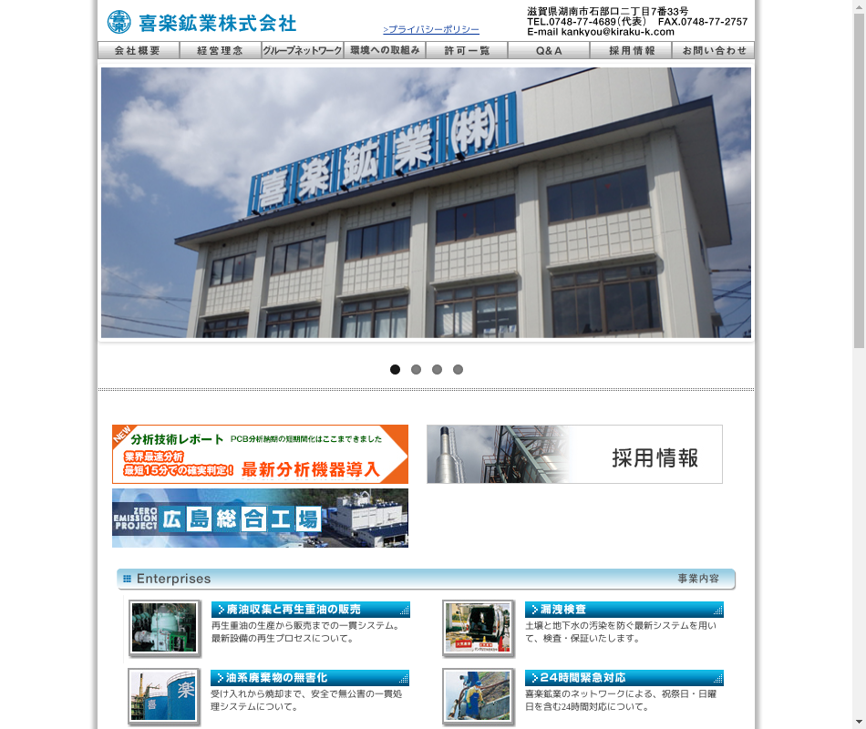 | 事業内容 | 再生重油の製造、販売。油系産業廃棄物の処理。地下タンク及びタンクローリー漏洩定期検査。 |