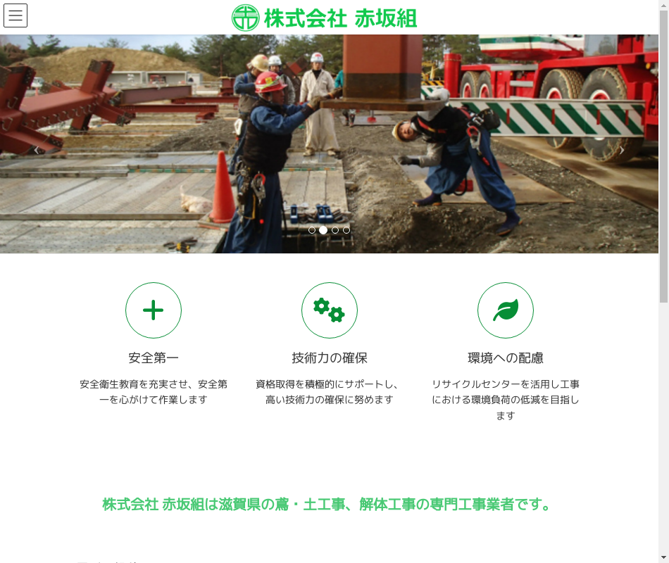 | 事業内容 | 建設業 滋賀県内を中心とした解体・建築・土木工事や産業廃棄物収集運搬・処分業(ISO14001取得) |