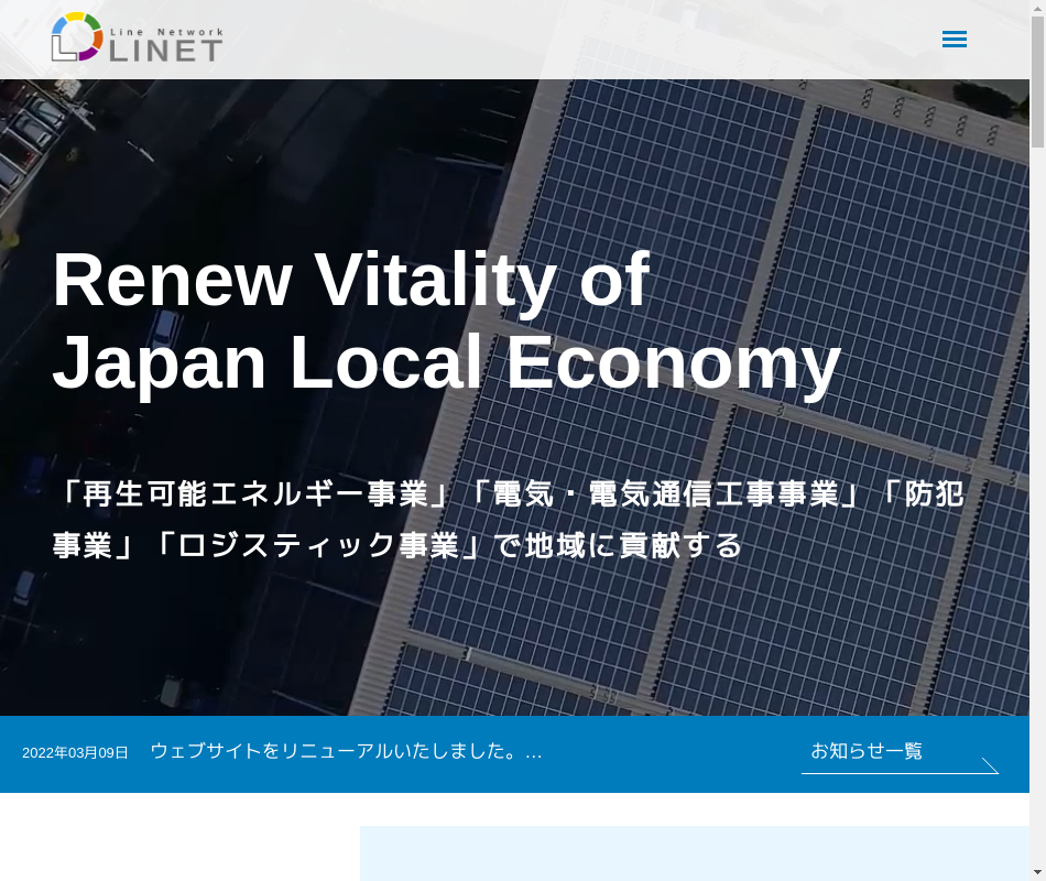 | 事業内容 | 再生可能エネルギー事業電気通信工事業一般貨物運送事業 |