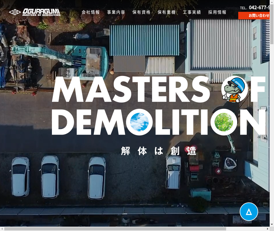 | 事業内容 | 建設業許可:とび・土木工事業・解体工事業。建築物・構造物の総合解体工事及び現場管理が主事業。解体する建物の構造:RC造/SRC造/S造/木造等で、中級~大型クラスの建物が中心です。 |