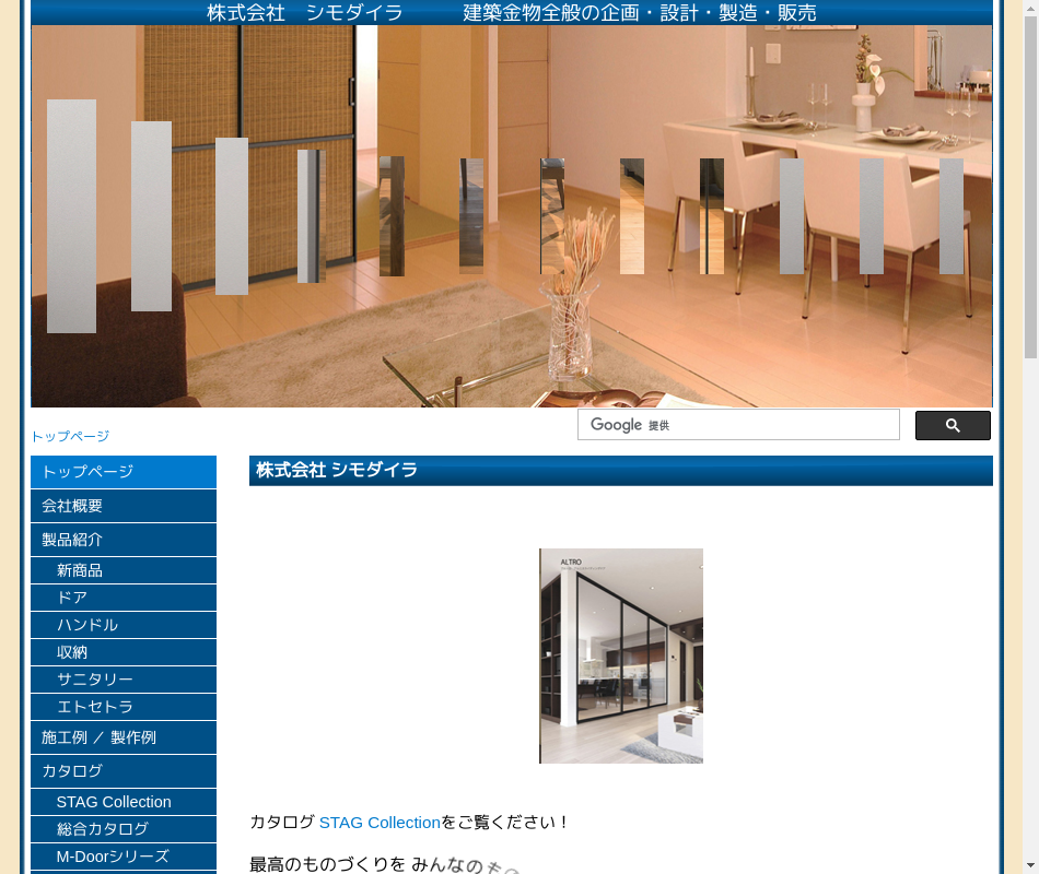 | 事業内容 | 建築金物及び内装家具・システムキッチン・収納扉等インテリア家具金物の企画・設計・製造・販売卸内装仕上工事業 東京都知事許可(特・30)第94014号 |