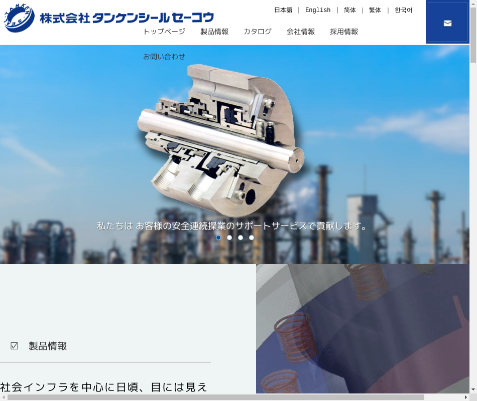 | 事業内容 | メカニカルシール、機械用カーボン、カルボン球パッキン、油圧ユニット、ボディフレーム、シール部品再生、等製造販売。『タンケン(探検)すればセーコウ(成功)する』をモットーとしています |