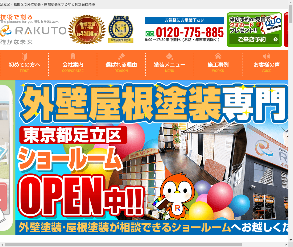 | 事業内容 | 特定建設業の許可を所得し、東京都内及び近郊のマンション、ビル等の大規模改修工事及び戸建て・店舗等の塗装・防水・シーリング・足場・その他工事など、建築塗装業全般を請負っています。 |