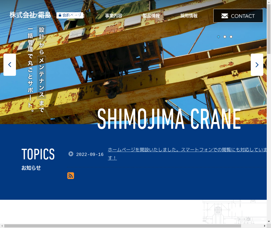 | 事業内容 | 工場や倉庫などでの機械や部品材料の運搬に用いられる機械”クレーン”の設計、製造、据え付け工事、メンテナンスまでを一貫して行う会社です。 |