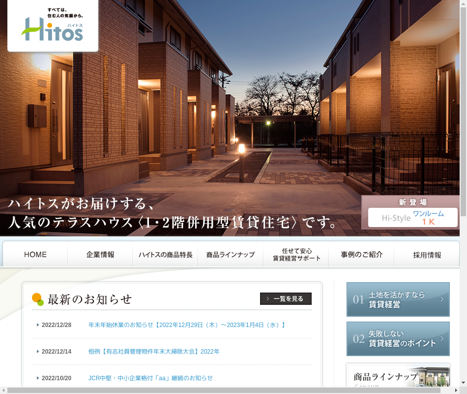 | 事業内容 | テラスハウス型に特化した賃貸住宅の販売・建築工事・土木工事の設計、施工、請負。 不動産の売買、賃貸、仲介、管埋 |