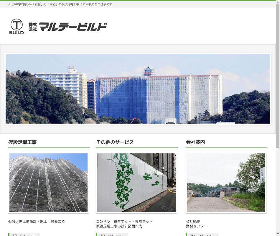 | 事業内容 | 枠組、単管、棚、吊足場、架払工事、一側足場、ゴンドラ、養生ネット、昇降ネット架払工事、架設工事の設計図面作成、一般建設業 |