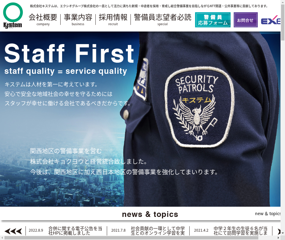 交通誘導、建築現場警備、施設警備、鉄道警備(列車見張り)等を行う警備事業を主な事業としております。 ビルの清掃や管理を行うビル管理事業、人材派遣事業、地下の鉄筋探査を行うエスパー探査などの業務も行っております