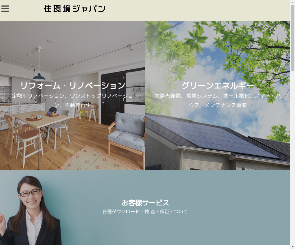 | 事業内容 | 住宅リフォーム建材等の販売ならびに工事及び、住宅設備機器等の開発・販売・施工・ビルリフォーム請負工事・一般リフォーム工事・太陽光発電システムの施工・販売 |