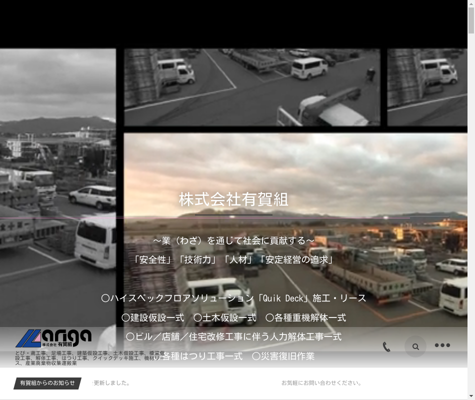 | 事業内容 | 建設工事(建築・橋梁・土木)にともなう仮設足場組立・解体、一般住宅等の解体工事 |