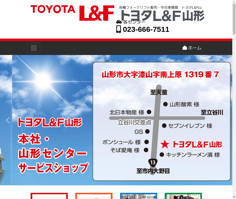 | 事業内容 | フォークリフト・ショベルローダー等の産業用車輌、物流機器の販売・修理。 本社は山形市。営業所は県内3ヶ所(余目・新庄・米沢) |