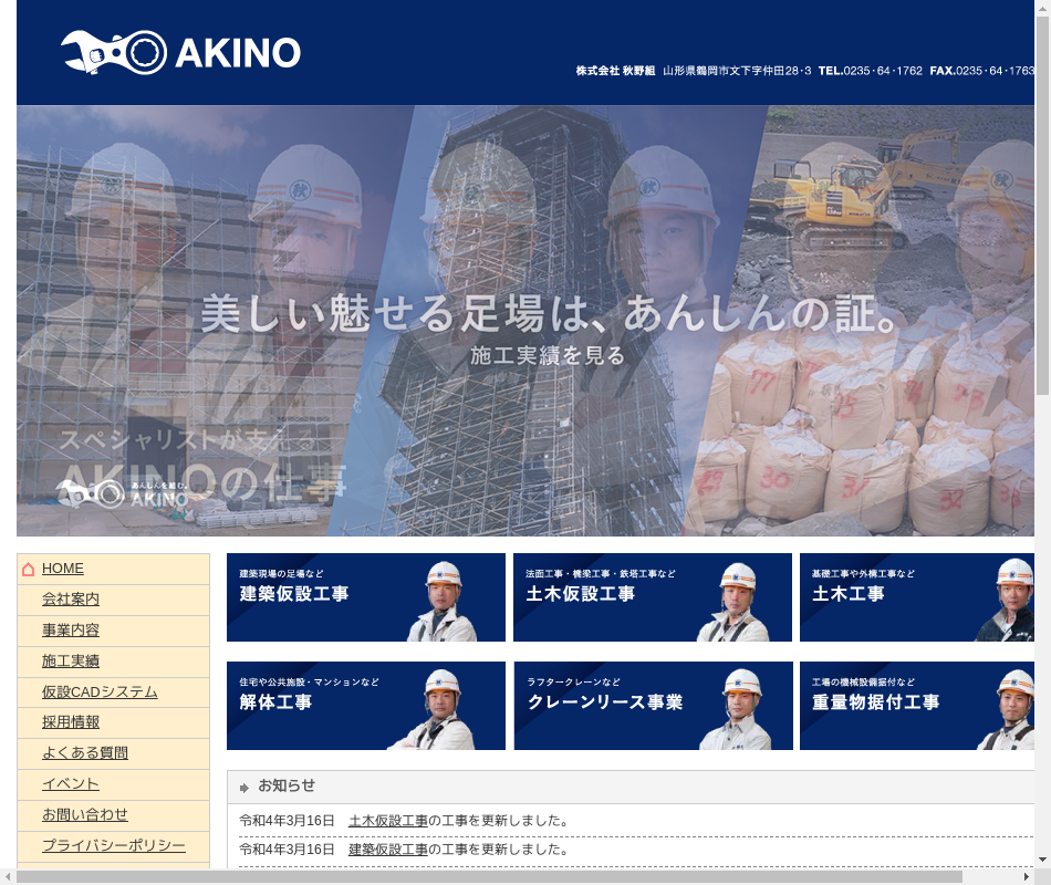 公共、民間工事の左官、土木、基礎工事等を庄内域区を主に事業を