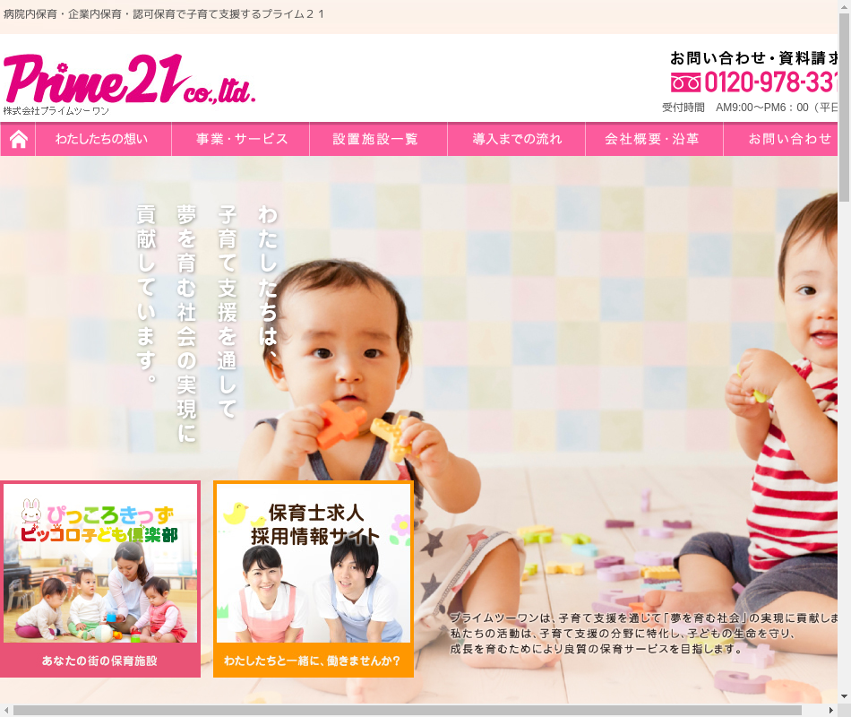 | 事業内容 | 認可保育園の運営、企業・病院等の保育所受託運営事業 派遺許可番号(般01-300015) |