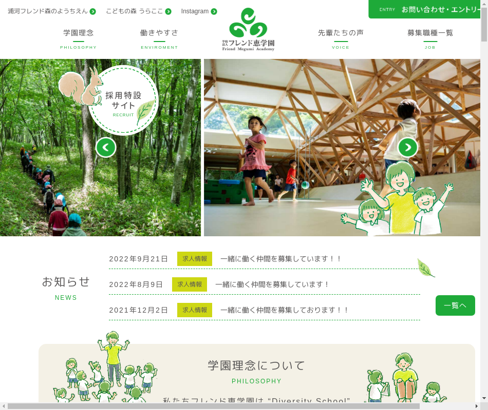 んの動物たちと触れ合える、自然とのかかわりを重視しています。