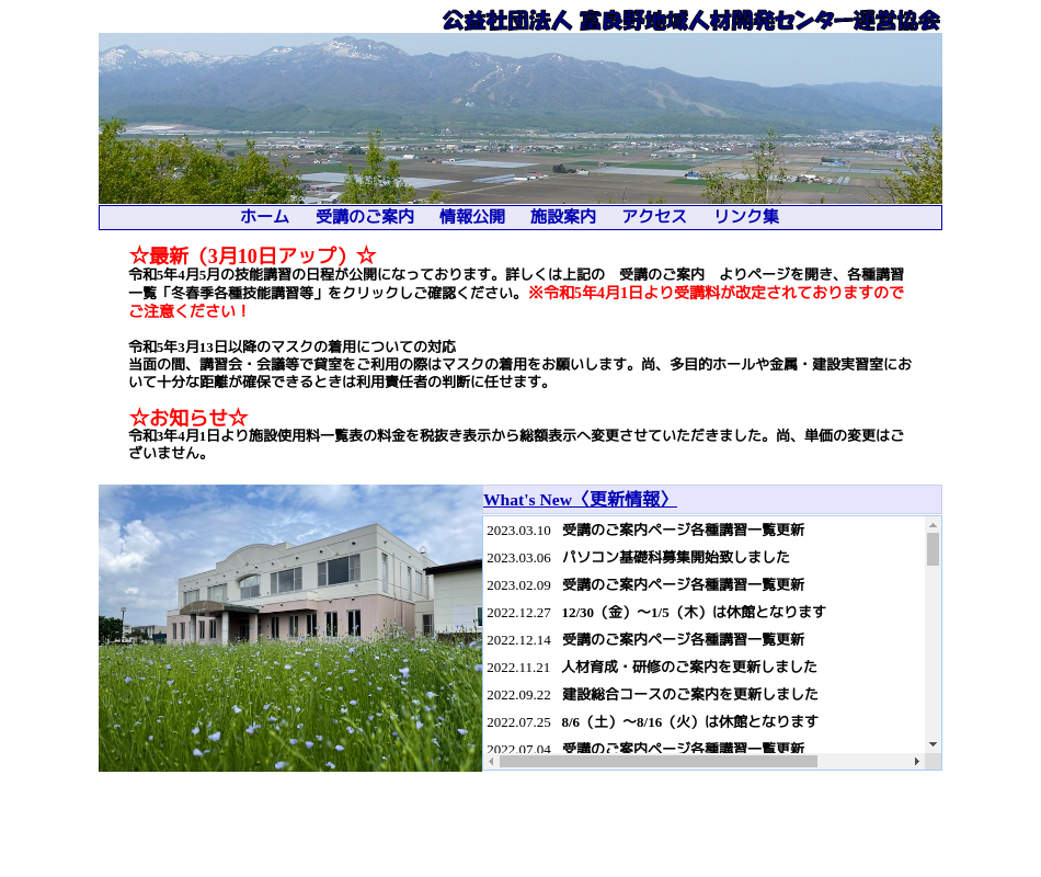 事業内容 | 職業訓練の実施、多種多様な研修及び講座等、情報提供事業、施設の提供 |