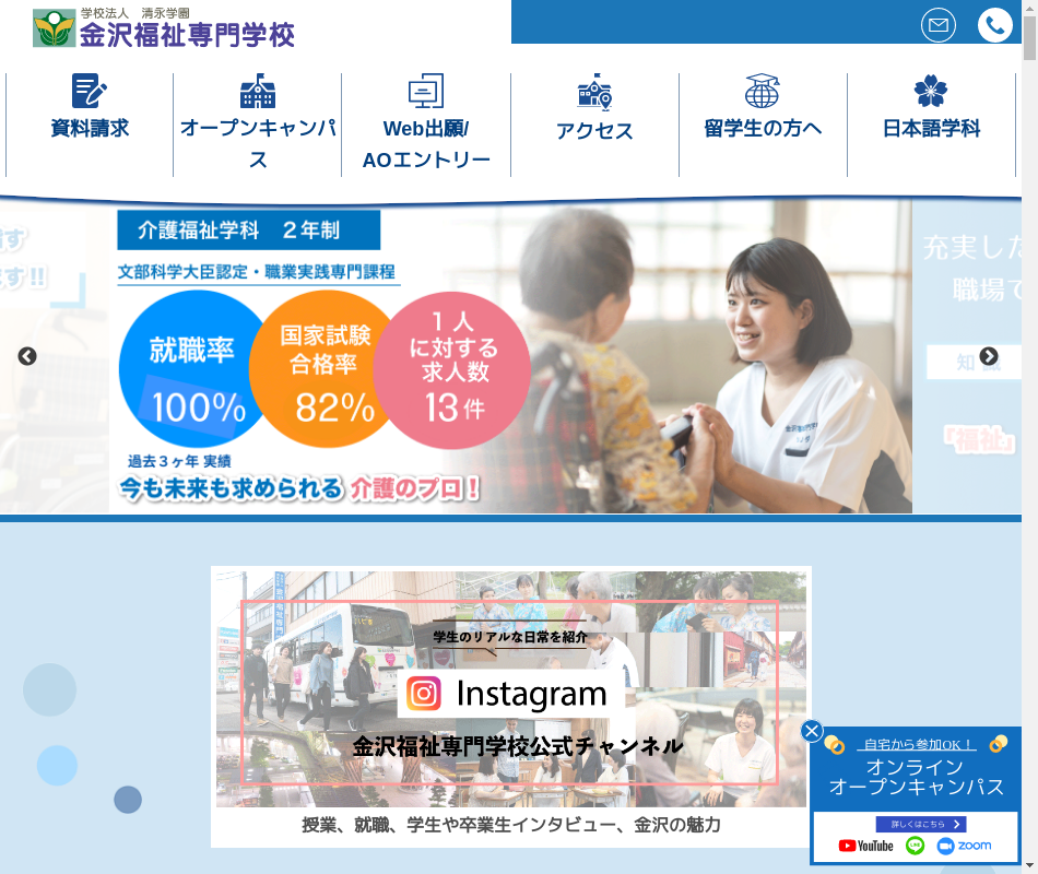 介護福社分野の専門課程をもつ専修学校。介護福祉士国家資格を取