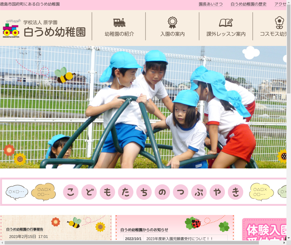| 事業内容 | 白うめ幼稚園では、3歳から就学前までの子どもの指導と保育。コスモス幼児教室では、1歳半から就園前までの子どもの指導と保育。 |