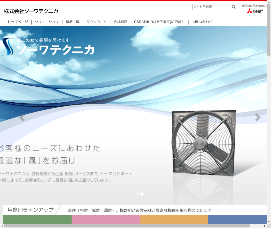 | 事業内容 | 業界シェアトップクラスの当社製品(産業用換気扇など)の設計から製造後、全国の代理店を通じて販売。また、親会社である三菱電機の換気扇の設計から製造も行っています。 |