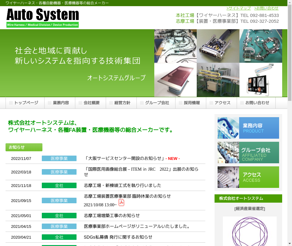 | 事業内容 | FA用ワイヤーハーネス加工組立医療機器の設計製作販売自動機械の設計製作販売 |