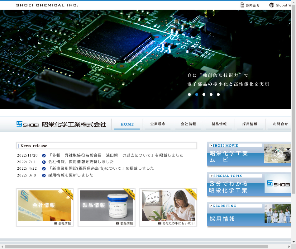 | 事業内容 | 電子材料の製造、販売及び輪出入。当社の製品はスマートフォン等の電子機器に搭載される電子部品に用いられます。コンデンサの材料では、世界トップレベルのシェアを誇ります。【画像あり】 |