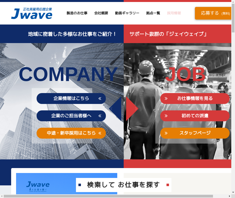| 事業内容 | 総合人材サービス業として職業紹介・人材派遣・アウトソーシング・再就職支援等のサービスを地域密着型ワークセンターを各地に配置して事業を展開しております。(般)40-120008 |