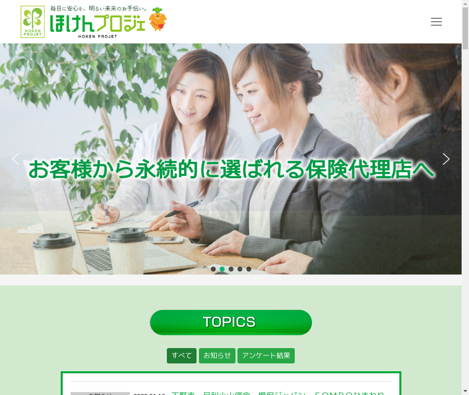 | 事業内容 | 東京海上日動火災株式会社の専属保険代理店です。事業保険・損害保険・生命保険を活用して、お客様の課題を解決することで顧客に貢献します。 |