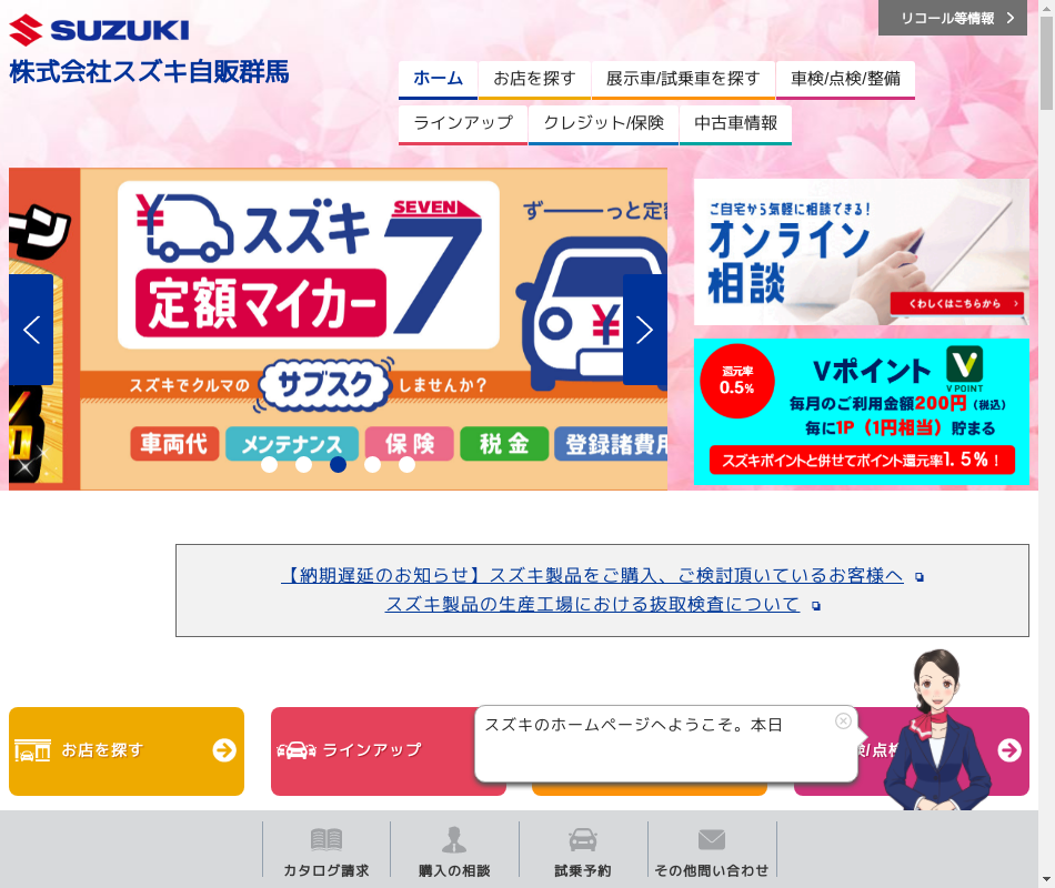 ・スズキ全車種販売 ・車検、整備 ・部品販売 ・損害保険代理店業務