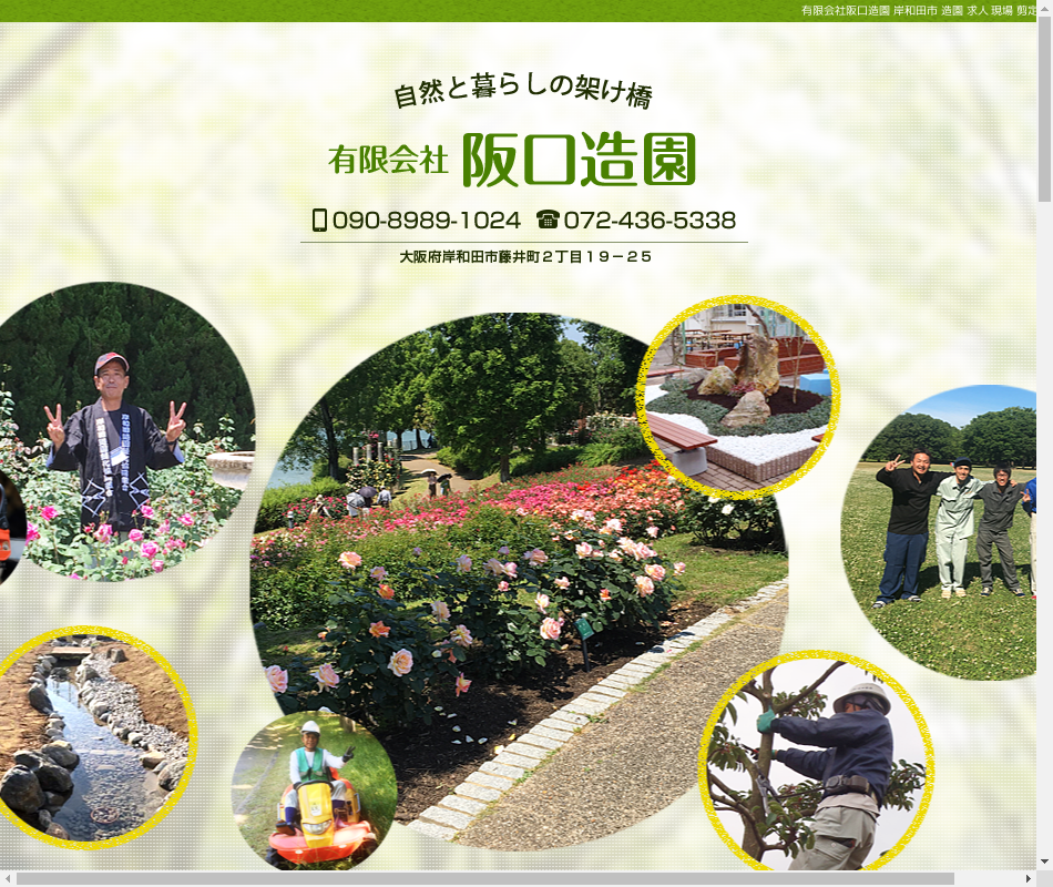 | 事業内容 | 大阪府内を中心に公共の造園工事。公園等の整備工事(土木・植栽)。緑地維持管理(除草・剪定) |