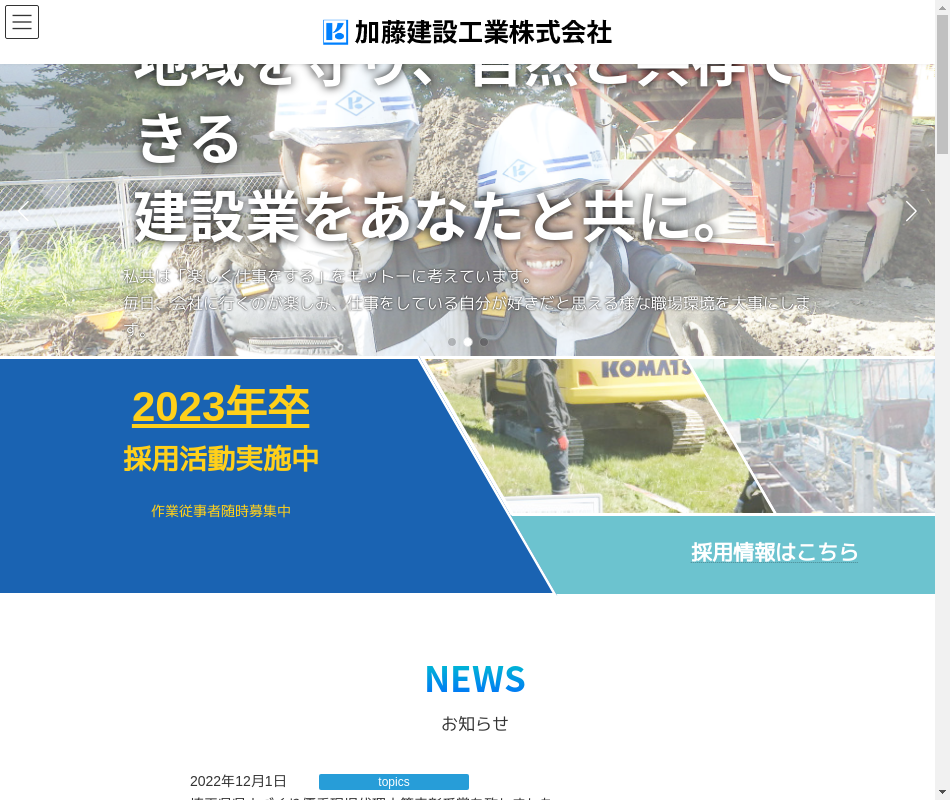 | 事業内容 | 総合建設業として土木/建築/管更生工事(既存管のリニューアル)、太陽光発電等を施工。本庄市・さいたま市を拠点。顧客層は官公庁・民間と幅広く事業展開。 【本庄地区雇用対策協議会会員】 |