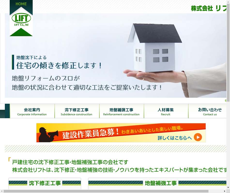 | 事業内容 | 建物沈下修正工事 鋼管地盤補強工事 |