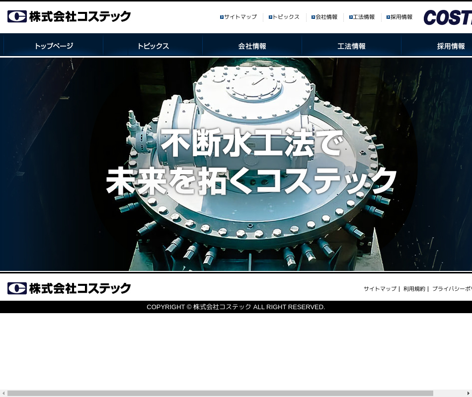 | 事業内容 | 通水状態のままで水道本管から枝管を分岐する「不断水分岐工事」の施工や、断水せずに既設管にバルブ等の挿入を行う「不断水インサーテイング工事」の施工などで、水道水の安定供給を支える。 |