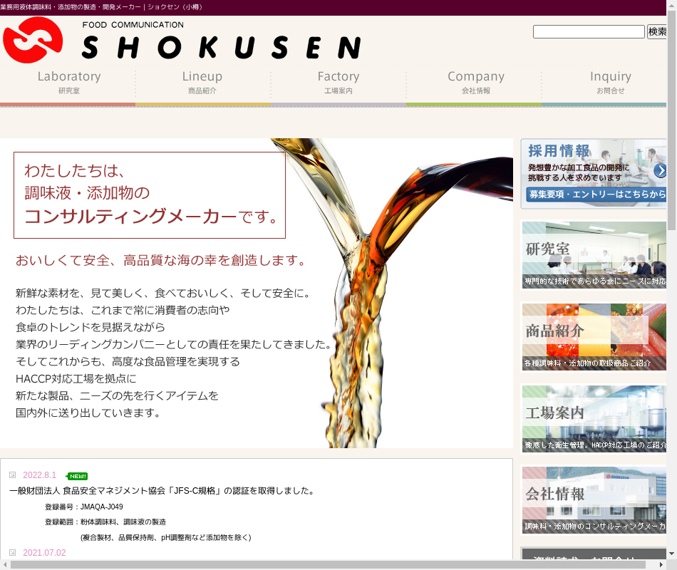 | 事業内容 | 業務用調味料・調味液及び食品添加物の製造、販売食品の研究開発、試験、分析、検査包装資材・包装機械の販売 |