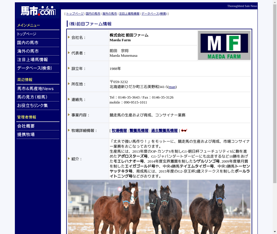 | 事業内容 | 競走馬の生産、中期育成、販売を本場と2つの分場で経営しています。 |