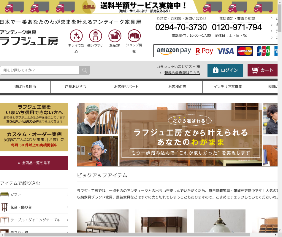 | 事業内容 | 国内外のアンティーク家具や雑貨を商材として仕入れ・リペア・ネットショップ(「ラフジュ工房」他)での販売・自社商品を使ったコーディネート提案・ウェブマガジン発信などを手掛けています。 |