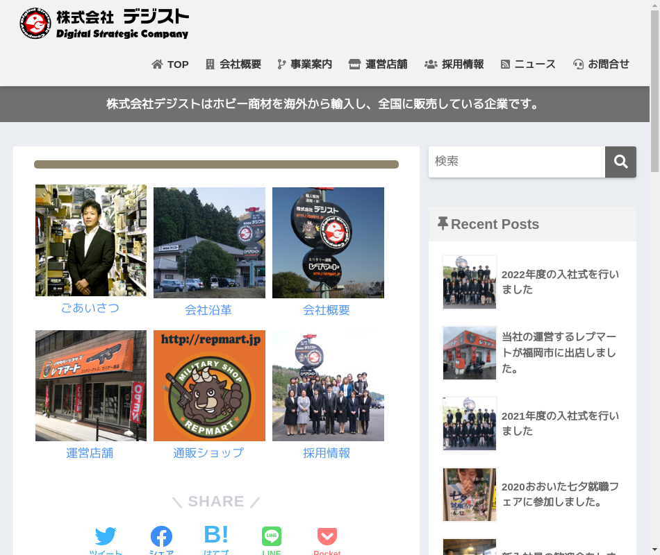 | 事業内容 | 輸入雑貨・アウトドア用品・ミリタリー用品・スポーツ用品・食品実銃のインターネット販売 ミリタリー輸入雑貨の実店舗運営 |