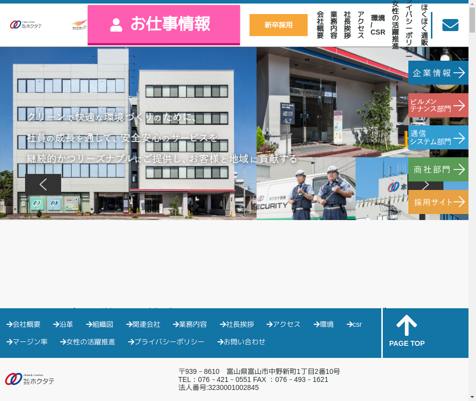 | 事業内容 | ビル総合管理、警備、旅行、情報通信機器販売・工事・保守・ソフト開発・派遣等、PFI事業、指定管理者業務、図書館業務般16-300108 |