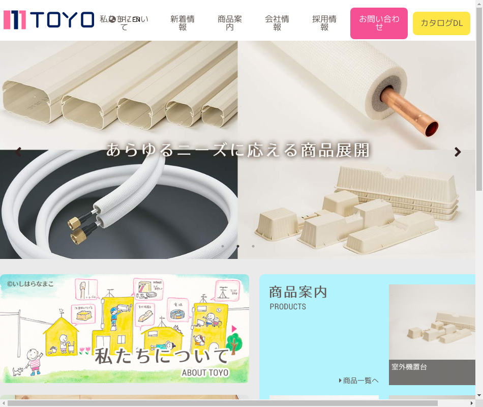 | 事業内容 | 空調関連部材の総合メーカー商社です。エアコンの室外機と室内機を接続する被覆冷媒配管の製造はもとより、ダクト、ドレン、置台等 空調設置のあらゆる資材を取り扱っています。 |
