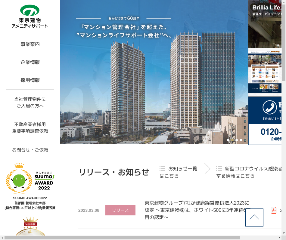 | 事業内容 | マンション管理事業/損害保険・生命保険代理業/駐車場・トランクルーム運営事業/住生活サービス事業/マンション大規模修繕事業/住宅リフォーム事業/インテリア商品販売事業 |