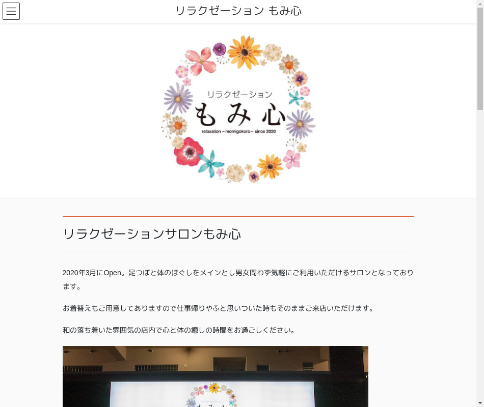 | 事業内容 | 全身もみほぐし・足つぼ・ハンドマッサージ・ヘッドマッサージなどリラクゼーションを提供致します。 |