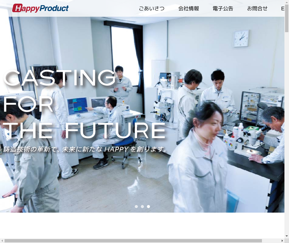 | 事業内容 | 輸送用機械器具製造業。銑鉄鋳物製品の製造と機械加工を主たる事業とし、特に車両の排気系部品への拡販を目指して、耐熱材質の開発に取り組んでいる。当社は『ハッピーグループ』です。 |