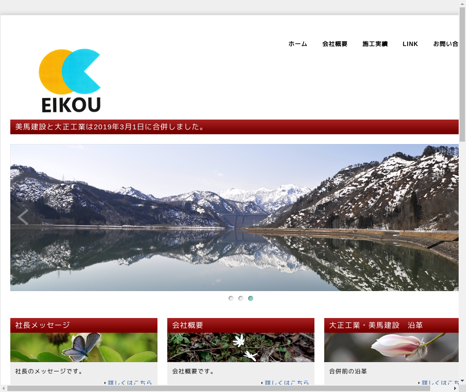 | 事業内容 | 知事許可の一般土木工事、鳶土工コンクリート工事、建築工事、管工事、鋼構造物工事、水道施設工事、機械器具設備工事と幅広く地域に密着した会社です。 |