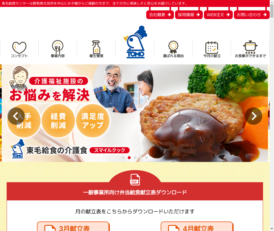 事業内容 | 太田市、大泉町、邑楽町、伊勢崎市、館林市の事業所約1100社に弁当給食を届けています。学校・幼稚園給食、仕出し料理、社員食堂の運営、高齢者向け弁当宅配等の幅広い食ビジネスを展開中。 |