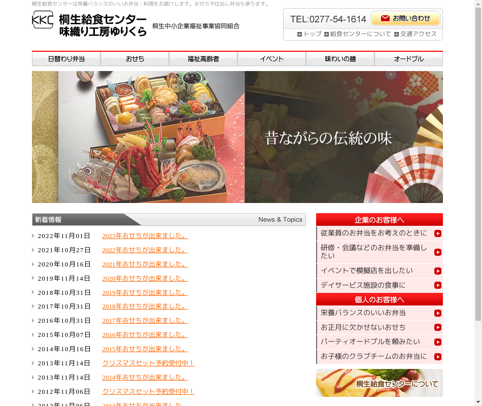 産業給食として日配弁当から事業所給食、社員食堂、学生食堂及び病院、老人保健施設の患者・入所者給食並びに会議、宴会、パーティー等の仕出し料理等の事業。